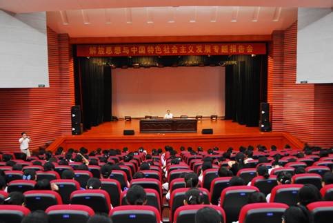 汪青松教授在报告会上,从解放思想与中国改革开放30的历程,如何进一步解放思想这两个大的方面展开论述。汪教授旁征博引、谈古论今,从“解放思想是发展中国特色社会主义的一大法宝”和“改革开放30年,就是解放思想的30年”详细地阐释了解放思想与中国特色社会主义发展的关系,并对新时期如何继续解放思想、解放思想的“六项”内容进行了精辟论述。汪教授幽默风趣,报告厅里不时地爆发出一阵阵的笑声和掌声。汪教授精彩的报告使广大同学在轻松愉快的氛围中加深了对解放思想与中国发展特色社会主义的理解,以及如何在学习和工作中解放思想有了深刻认识。 校党委委员、社科部主任王方根在报告结束后的总结讲话中指出,汪青松教授精彩的报告,给我们上了一堂生动的一课。有利于我们进一步加深对解放思想和如何解放思想的理解。只有解放思想才能更好地促进中国特色社会主义的发展;只有解放思想,才能更好地与时俱进。希望师生们结合汪教授的报告,把“解放思想”真正落实到工作和学习中,为中国特色社会主义建设做出更大的贡献! (社科部 刘振宏/文 宣传部 郭平石/摄 凤焱/审 ) 安庆师范学院院长汪青松教授在作报告 校党委副书记郑勇超在主持报告会 报告会现场 师生在认真聆听报告