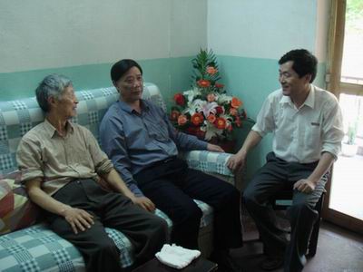 在钟甦同志家里,宋院长与他亲切交谈,向他介绍学校的近期情况,仔细询问他的生活、身体状况以及存在的困难,并送上鲜花致以节日的问候。钟甦同志及其家属对组织上的关怀和同志们的问候非常感动,对近年来学校党委和行政重视关心离休干部、劳模的生活表示感谢。