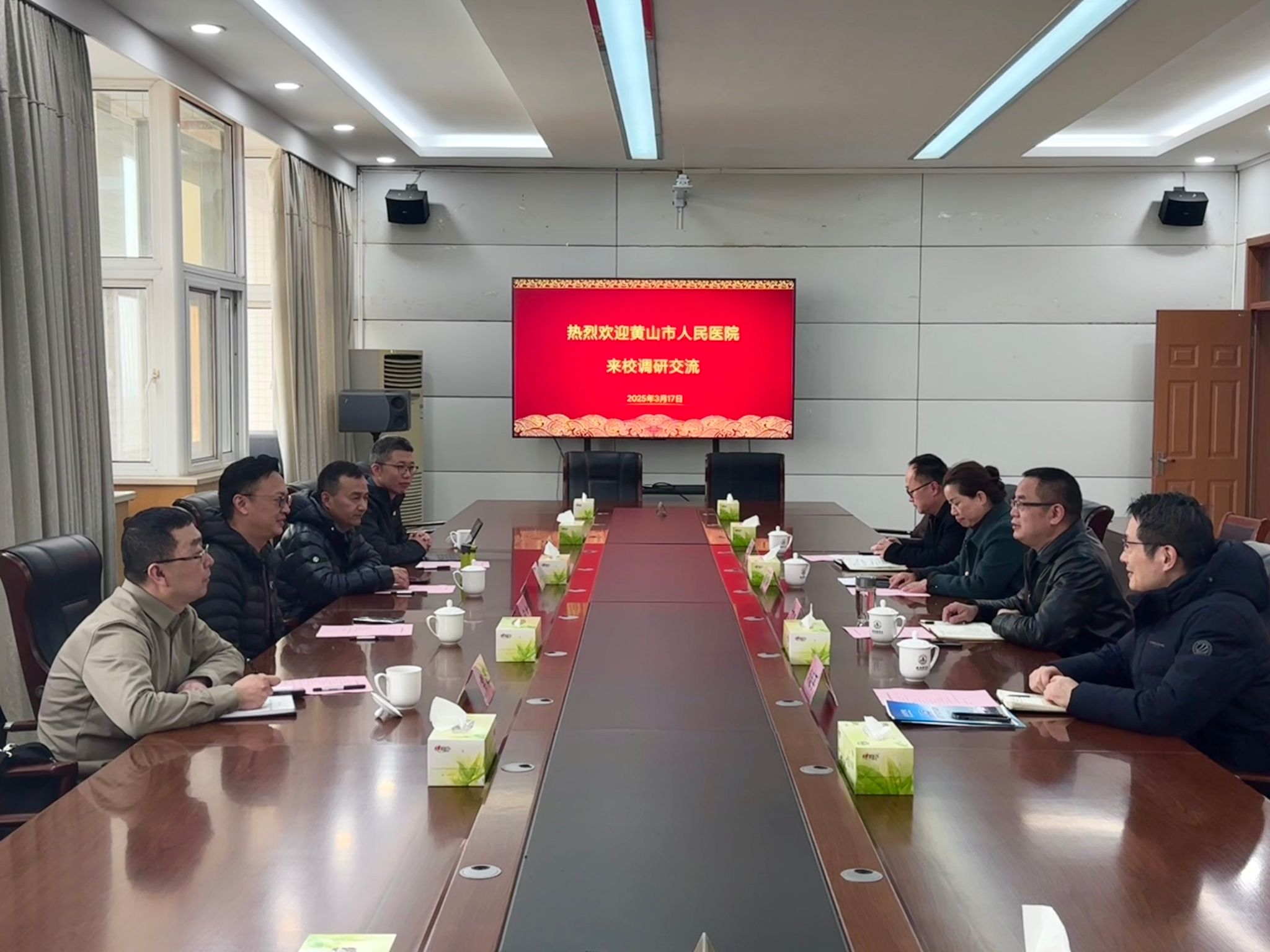 3月17日下午,黄山市人民医院党委副书记、院长宋巍一行来我校调研交流,学校党委常委、副院长文育锋出席活动。