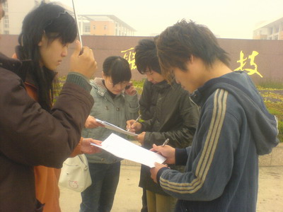 11月23日下午,药学系07级制药工程八班部分同学对高教园区大学生展开有关金融危机的问卷调查活动。