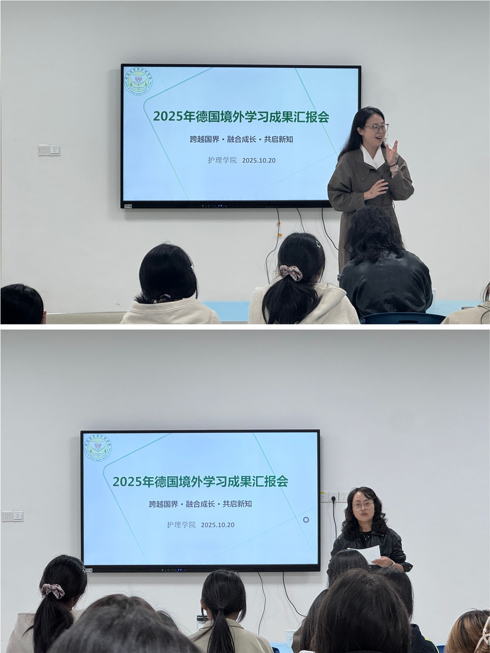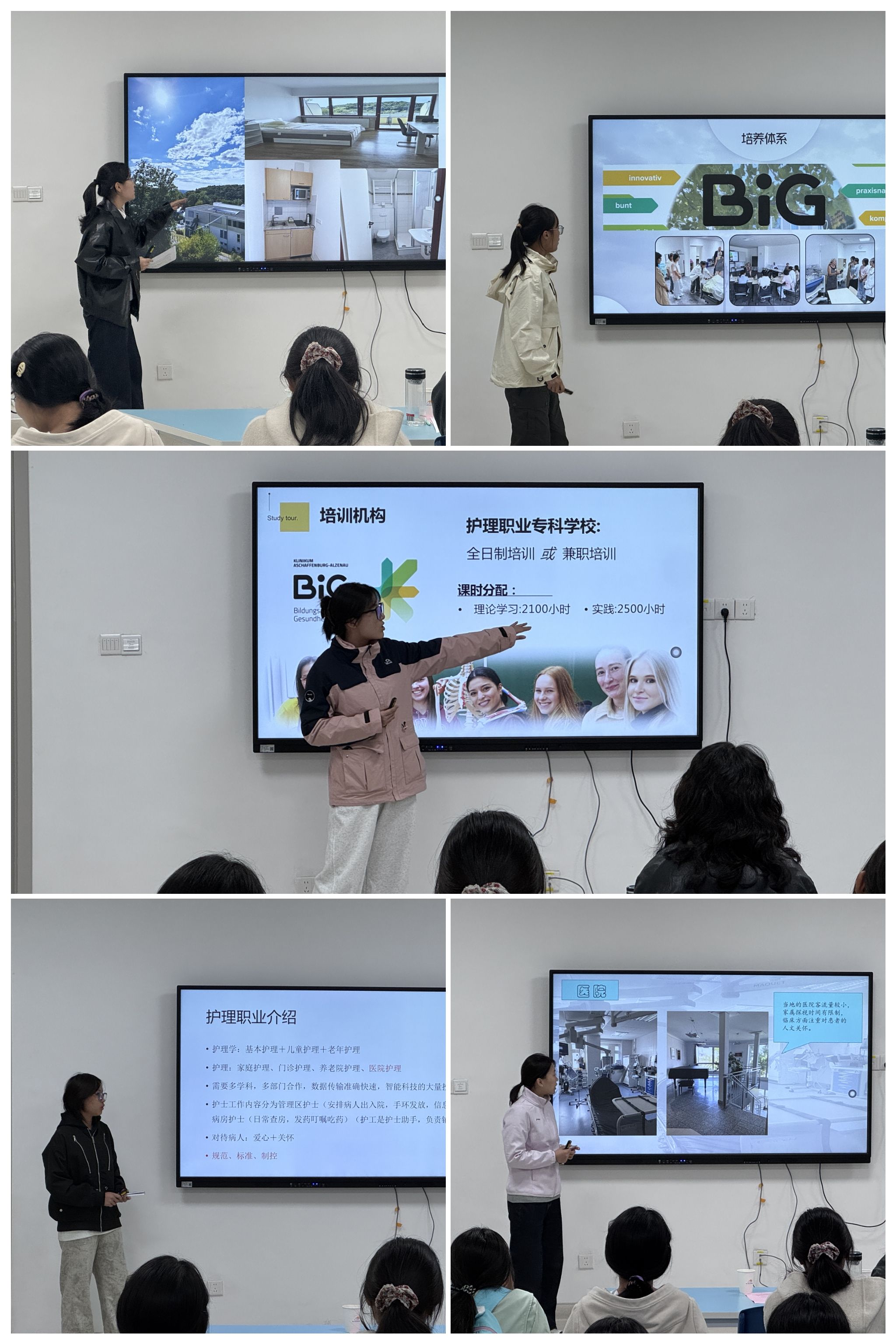 本次汇报会不仅是一次学习成果的集中展示,更是一次生动的国际化教育课,有助于进一步激发中德班同学的学习热情和对国际护理领域的探索,为深化国际合作与交流、培养具有国际化视野的优秀护理人才注入了新活力。(蒋晓涵、范绮慧/文  王雨晴/摄)